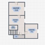 Общая площадь - 122.0 м2, Жилая - 45.0 м2, кухня - 9.3 м2.