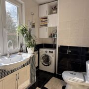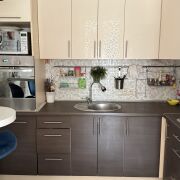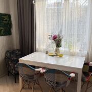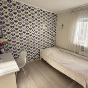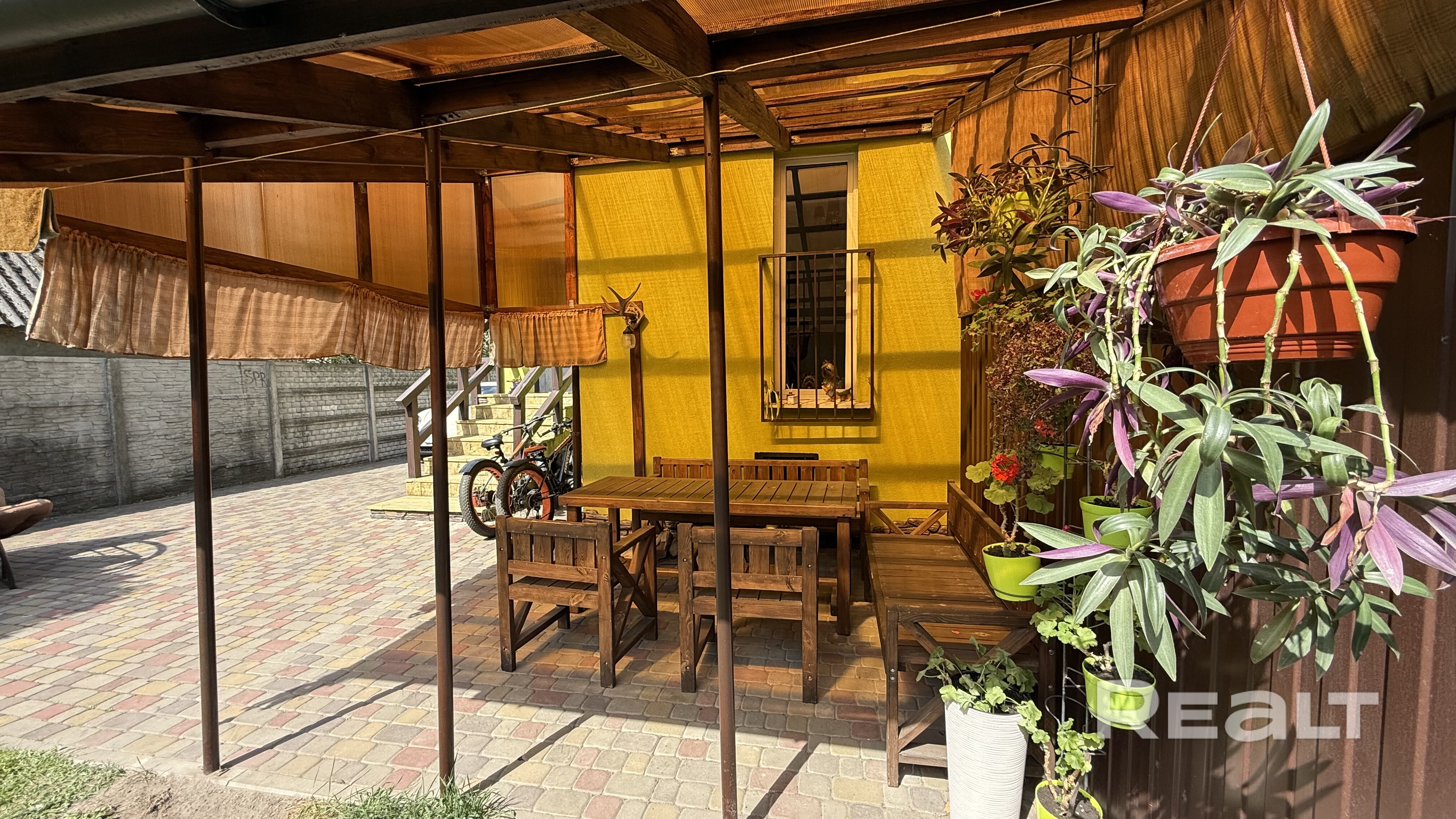 На 1-м этаже расположились одна из спален, кухня, санузел и прихожая, на 2-м мансардном - ещё 3 комнаты и санузел, также для организации систем хранения есть 2 кладовые. Полноценный цокольный этаж разместил топочную и другие помещения для хозяйственных нужд. Уютная с современным ремонтом и полностью готова к проживанию: на полу - плитка и ламинат, на 1-м этаже теплый пол, потолок натяжной со встроенным освещением, стены выровнены и оклеены обоями, современная плитка в санузлах. Все коммуникации - центральные. Квартира полностью автономна от соседей, к ней относится участок 3,36 сотки, огорожен со всех сторон, благоустроен. Во дворе организована зона отдыха под навесом, огород, газон, декоративные растения и кусты .Организован комфортный заезд на территорию и место для стоянки двух авто.