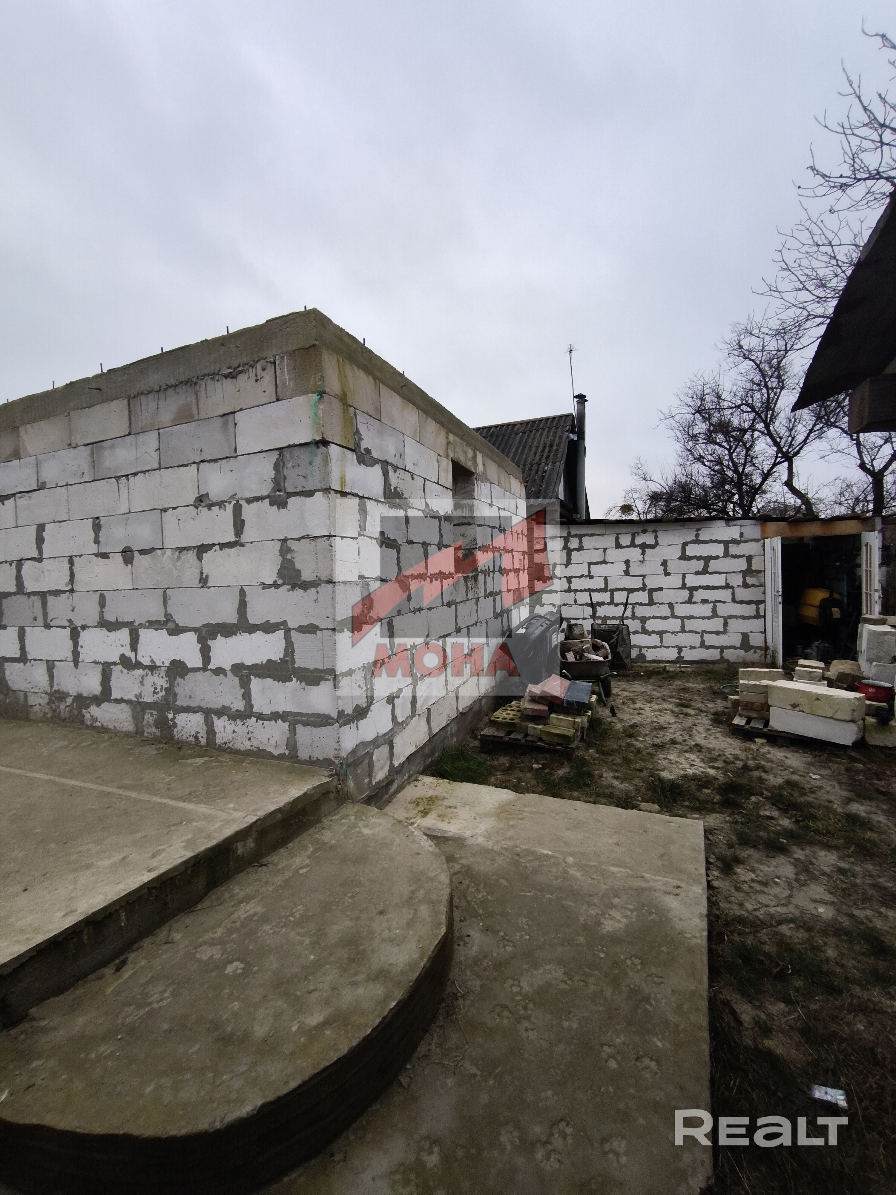 Начато строительство блочной пристройки к дому: залит фундамент и крыльцо, выложены блочные стены по периметру, на три комнаты.