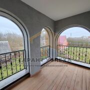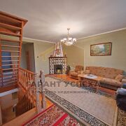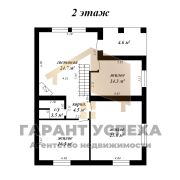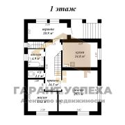 Общая площадь здания, в которую входит площадь цокольного этажа (90кв.м) составляет 273,7 кв.м, жилая площадь составляет 119,7 кв.м. В доме жилые комнаты равномерно размещены на разных уровнях. На первом этаже имеется просторная кухня со столовой, раздельный санузел, прихожая, выход на цокольный этаж с топочной и вспомогательными помещениями. Ещё один совмещённый санузел расположен на 2 этаже, а из светлого холла с действующим камином и деревянной лестницей предусмотрен выход на лоджию с кованым ограждением.