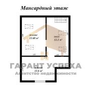 Общая площадь – 80 кв. м, жилая – 45 кв. м, кухня совмещена с просторной гостиной. Две изолированные жилые комнаты на мансарде. Коммуникации
