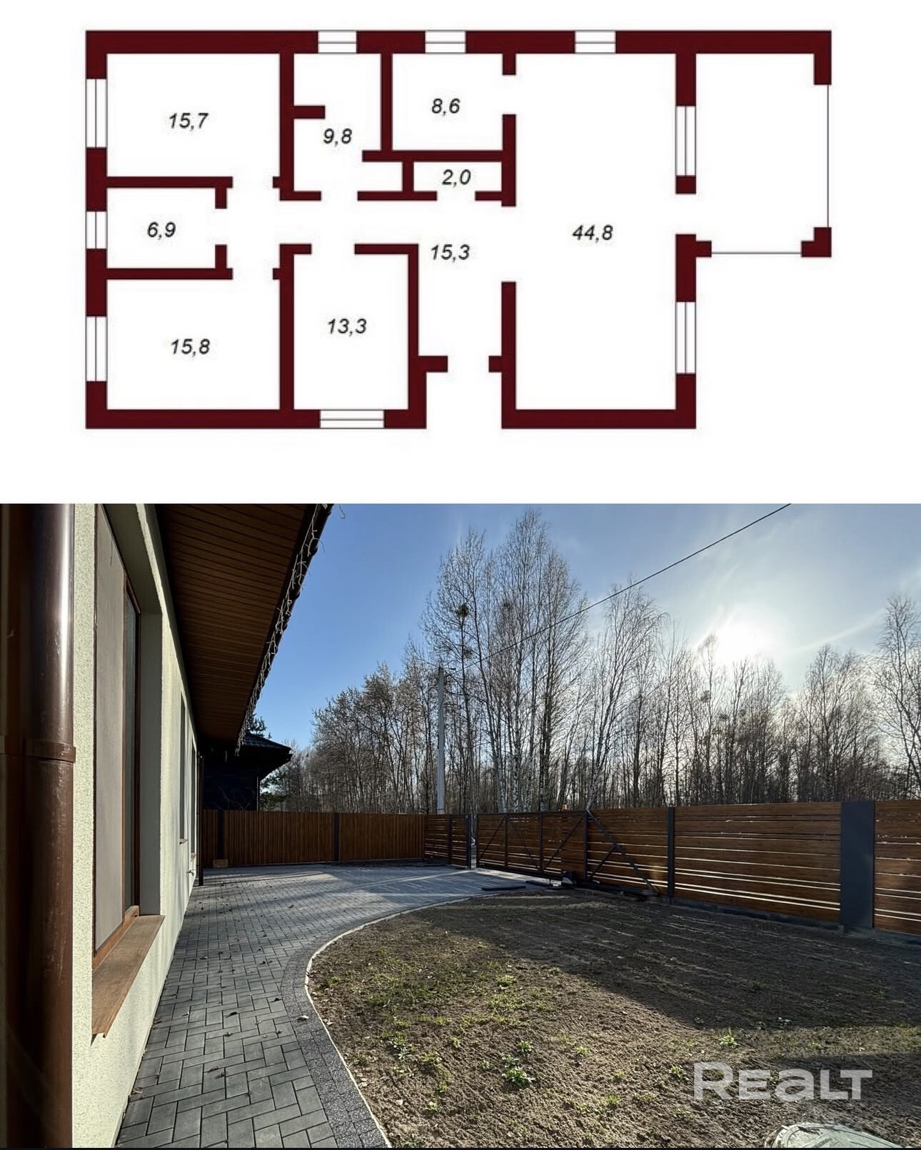 Современный одноэтажный дом «заезжай и живи» в лесной зоне, 15 минут до центра Бреста. Цена обсуждается при личном просмотре. Звоните — расскажу детали.