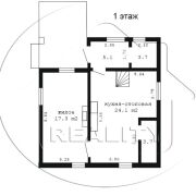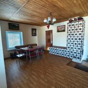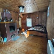 Планировка и характеристики: 3 комнаты, кухня, совмещённая с гостиной, совмещённый санузел, есть печь и камин — создают уют и дополнительный источник тепла, полы — доска, стены — вагонка, пластиковые окна, металлическая входная дверь.