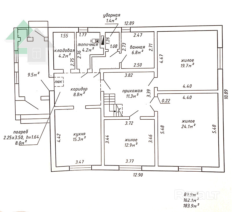 Предлагаем купить дом 2004 г.п. (реконструкция в 2022г.) с земельным участком (частная собственность) 0,1659 га расположен д.Тюхиничи Брестский район. Дом с жилой мансардой. Общая площадь жилого дома 183,9/162,1 кв.м., жилая – 89,9 в.м., кухня 15,3 кв.м. 5 жилых комнат. Есть гараж на участке. Стены: г/с блок/ кирпич; кровля – шифер. В доме удобная планировка. На первом этаже расположена: отдельная кухня 15,3 м2, 3 жилые комнаты, с/у раздельный, кладовая, погреб, дополнительный выход во двор. На втором этаже расположены 2 комнаты, балконы закрытые. Потолки – снежка/натяжные, полы – ламинат. Современный кухонный гарнитур. Ванная комнаты облицованы керамической плиткой, оборудованы сантехникой. Новые межкомнатные двери. Коммуникации: водоснабжение, электричество, газ (отопление - газовый котел) – централизованные, канализация - автономная. Земельный участок площадью 0.1659 га (частная собственность), выполнено благоустройство тротуарной плиткой, газон, ограждении по периметру (въездные ворота откатные), на участке высажены туи, оборудована зона барбекю и закрытая беседка. На участке гараж, хоз постройки, большой огород с плодородной землей. Подъездные пути – асфальт. Рядом продуктовый магазин, остановки. Код 26016 разумный торг. Договор № 16 от 28.01.2026г.