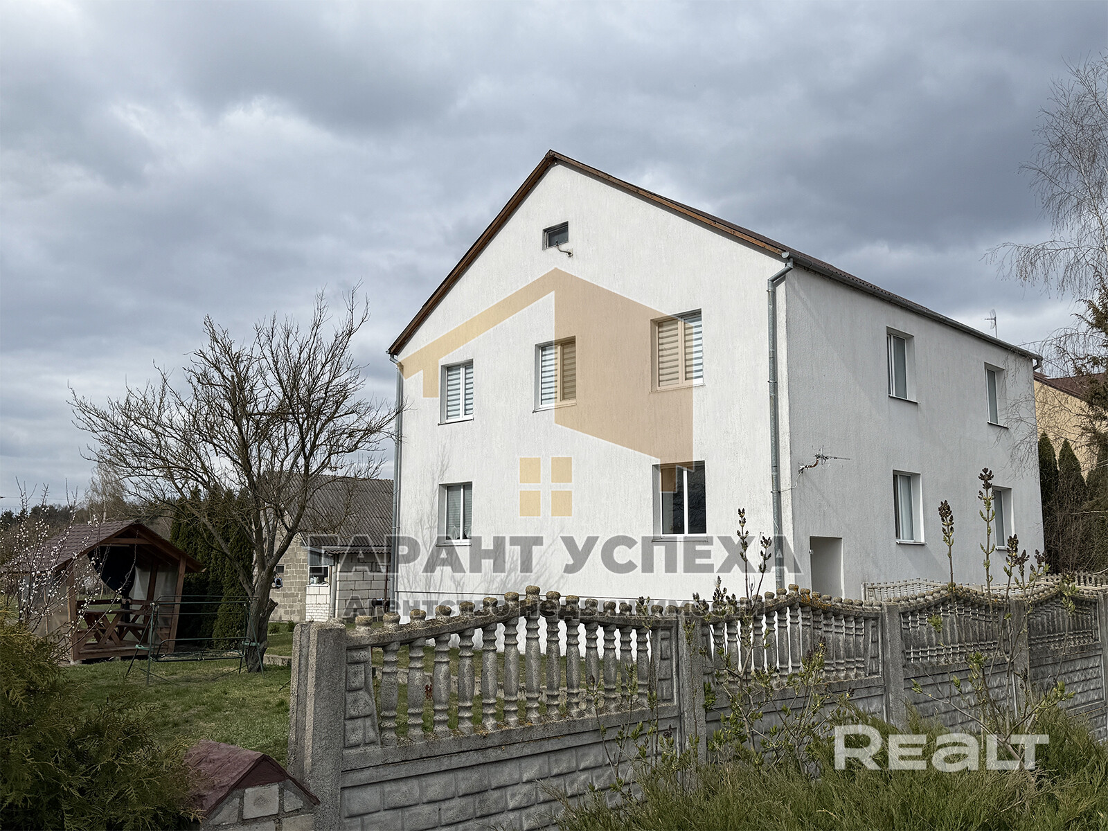 Общая площадь здания 192.3 кв.м. На первом этаже располагается прихожая, кухня, гостиная, жилая комната, санузел. Второй этаж включает четыре отдельные комнаты, расположенные друг напротив друга и просторную гардеробную. Цокольный этаж с удобным доступом, можно попасть из первого этажа. Под домом расположены два полноценных гаража , один из которых со смотровой ямой.