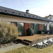 В мкр. индивидуальной коттеджной застройки Волынка г. Бреста продается современный жилой дом 2021 года постройки. Дом площадью 141,7/86,4/13 м2 расположен на земельном участке 10 соток правильной прямоугольной формы. Фундамент дома-ленточный монолитный, кровля двускатная фальцевая. Стены дома - г/с блоки, утеплены минеральной ватой 10 см. Фасад дома - декоративная штукатурка церизит и деревянные панели. Окна ПВХ панорамные в пол.