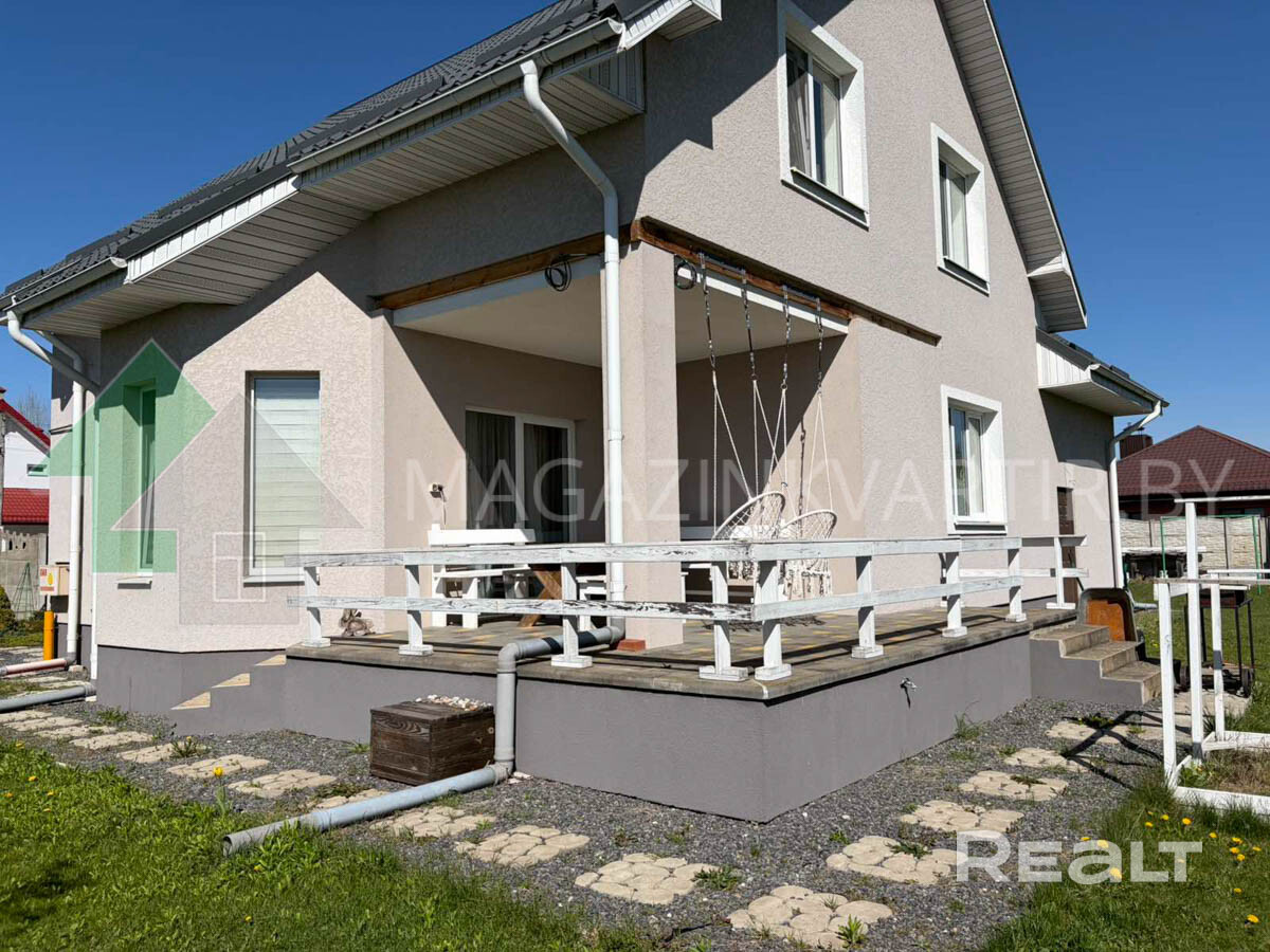 Предлагаем купить двухэтажный жилой дом 2014 года постройки, расположен в г. Бресте ( Козловичи). Общая площадь по СНБ 228,8 кв.м., жилая – 132,1 кв.м., кухня- столовая 23,2 кв.м., гостиная- 24,7 кв.м., терраса- 6,8 кв.м.. Два санузла. Участок площадью 0,1105 га. Есть гараж 27,5 кв.м.. Стены: блок; фундамент- ленточный монолитный; кровля – металлочерепица. Установлены стеклопакеты. Отличная, продуманная до мелочей планировка дома!!! Пять жилых комнат, обеденная зона площадью 23,2 м2, с/у и вспомогательные помещения. Внутренняя отделка выполнена из современных строительных материалов. Стены- выровнены и окрашены/ обои. Потолки со встроенным освещением- снежка/ натяжные, полы –плитка/ ламинат, межкомнатные двери- массив. Кухня со встроенной мебелью и бытовой техникой. Ванная комната и санузел облицованы керамической плиткой современной коллекции, оборудованы сантехникой. Коммуникации: электричество, газ (отопление - газовый котел) -централизованные, водоснабжение- централизованные, канализация – централизованные. Земельный участок площадью 0.1105 га (в пожизненно наследуемом владении) огорожен по периметру, установлены откатные ворота. Дом полностью готов для жизни! Подъездные пути – асфальт. В шаговой доступности магазин, остановки общественного транспорта. Код объекта 26076 Договор № 76 от 22.04.2026 г.