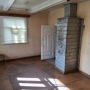 Дом старый, деревянный, требуется ремонт. Коммуникации за забором. Отопление печное. На кухне стоял насос на скважину. Предыдущий жилец насос снял.