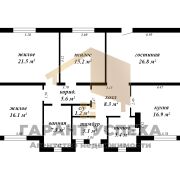 В доме продуманная планировка, пространство грамотно зонировано. Просторная прихожая плавно переходит в коридор, который разделяет зоны дома. В одну сторону кухня, гостиная с выходом на террасу, санузел, топочная. Вторая часть дома - спальная зона на три комнаты и отдельным совмещенным санузлом.