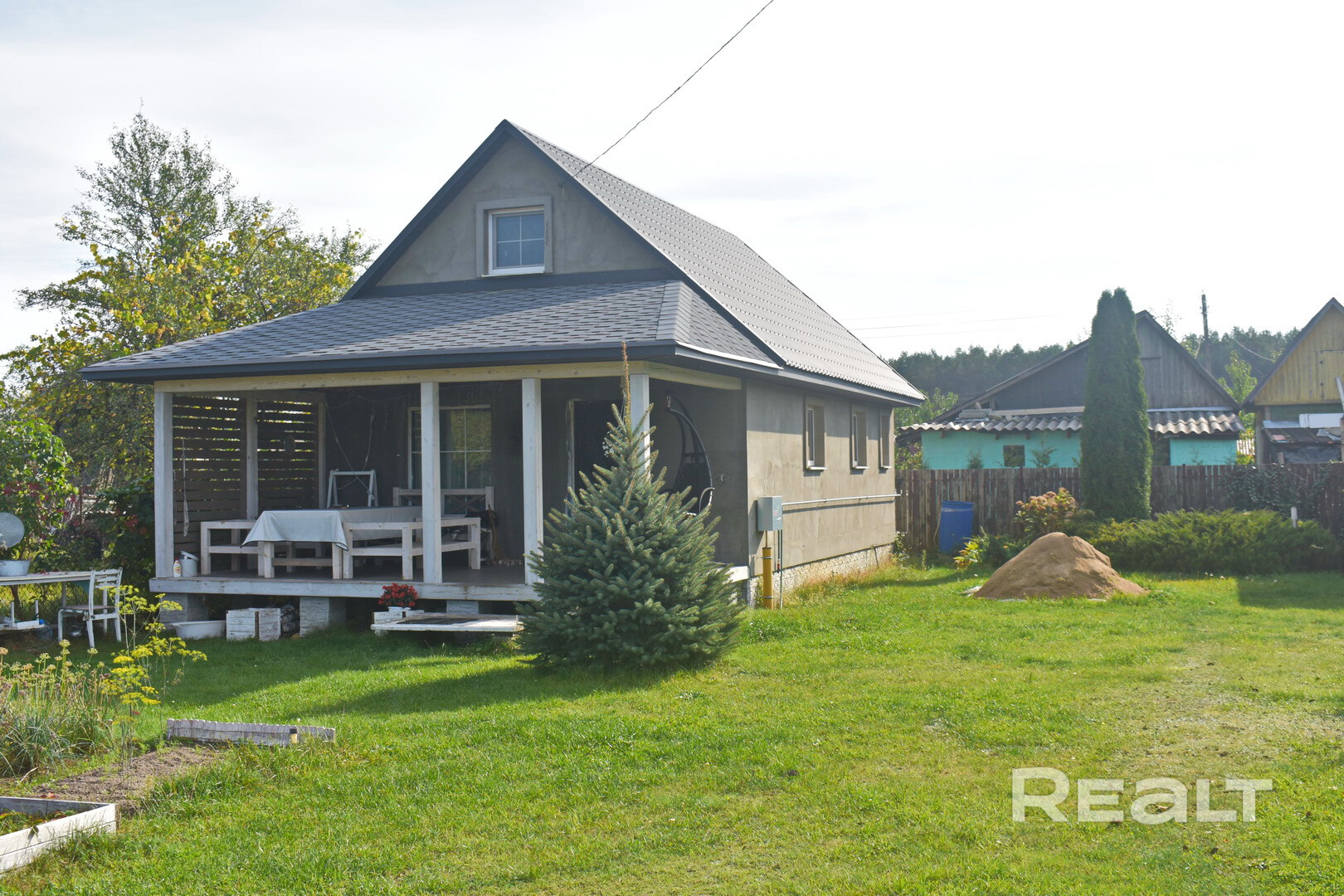 Дачный дом мансардного типа 2018 года постройки. Материал стен: газосиликатные блоки + пенополистирол ( 5 см), оштукатурин под сетку. Кровля – металлочерепица. Установлены стеклопакеты. В доме две жилые комнаты.ОБЩ ПЛ:46 м2, 1-й этаж: кухня-столовая + гостиная 34,1 м2 (совмещенное пространство), санузел 3,2 м2, топочная 3,2 м2. Мансардный этаж: 30 м2, разведено отопление, выведена сантехника и вода под ванную комнату.