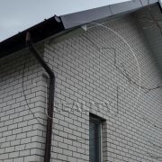 Фундамент ленточный монолитный; материал - бетон; подушка - бетонная. Стены дома- силикатный кирпич; утепление - пенополистирол ( ППТ); отделка фасада - обольский кирпич. Кровля: шифер. Выполнена подшивка кровли профилированным металлом. Окна ПВХ.