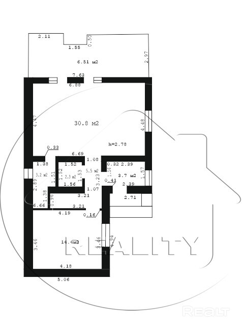 Участок площадью 7,7 сотки правильной формы. В частной собственности. Огорожен с трёх сторон. Достаточно места и для сада-огорода и для постройки бани. Перед домом на границе участка есть место для стоянки авто.