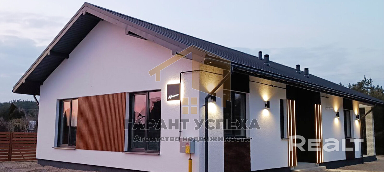 Зайдя в дом, попадаем в просторный холл, гостиная в одном пространстве с кухней, но имеет зональное разделение. Туалет и ванная раздельные. Теплые полы везде, кроме жилых комнат. Участок выравнен, очищен от насаждений.