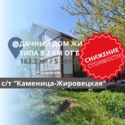 Продается дачный дом жилого типа, расположенный всего в 2 км от города, в Брестской области, Брестском районе, на территории садового товарищества Каменица-Жировецкая. Участок площадью 5 соток вмещает просторный блочный двухэтажный дом общей площадью 163,2 м2, построенный в 2012 году. На участке имеется скважина с электрическим насосом, подключено электричество, организовано отопление и местная канализация с септиком.