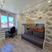 Дом прекрасно подойдет для большой семьи: три спальни и кухня совмещена с гостиной с окнами в пол, установлена мебель и техника. Жилые комнаты состоят из родительской спальни и обустроенной детской комнаты. Третья спальня ждем ваших дизайнерских решений.