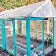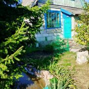 Дачный дом с мансардой 1996 года постройки в ближайшем пригороде Бреста. Стены из газосиликатных блоков, кровля – шифер, крыша двускатная. Общая площадь 38,7 кв.м. По плану три комнаты с кухонной зоной расположены на разных уровнях. Окна- деревянные, стены обшиты вагонкой, на полу- доска.