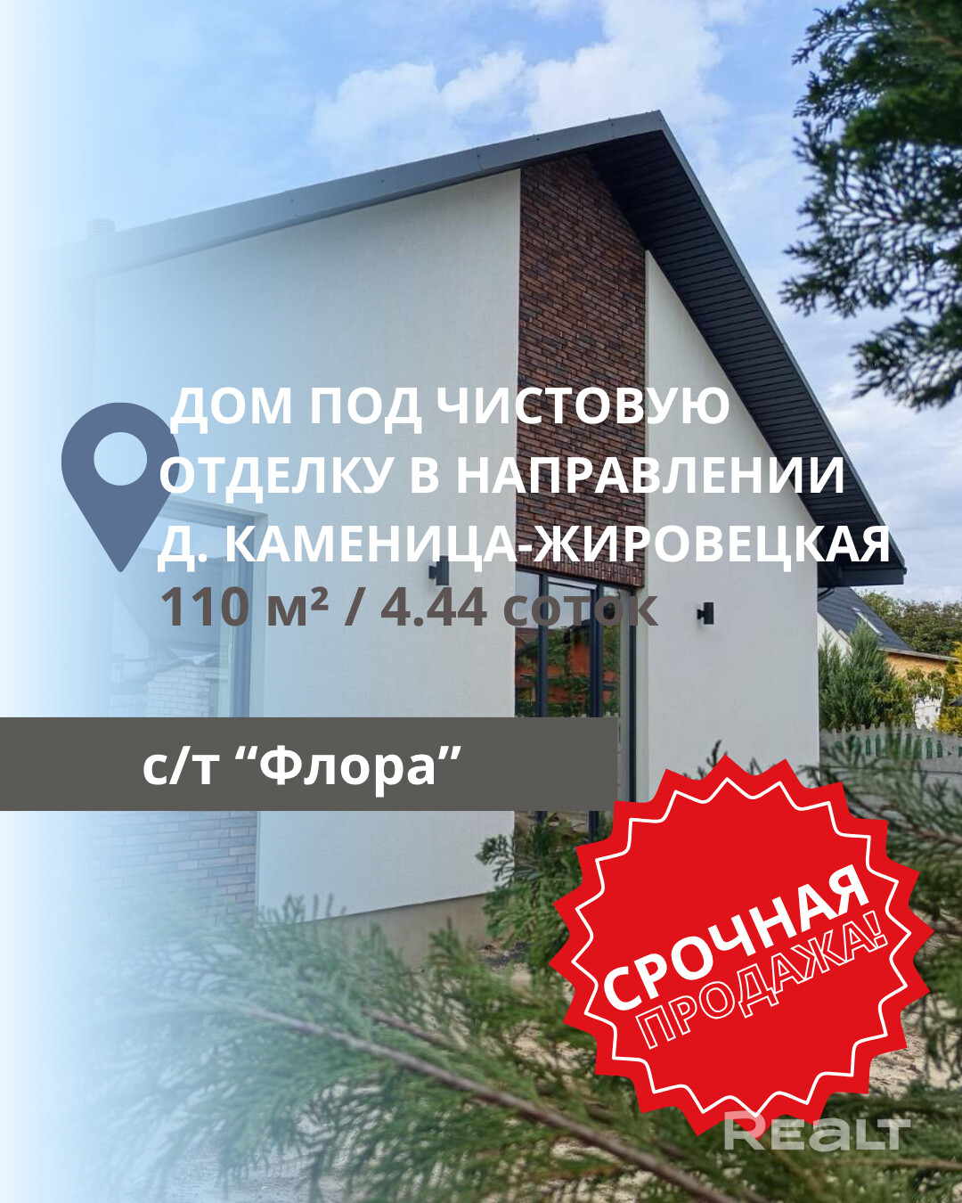 Предлагаем лучшее предложение в направлении Каменица-Жировецкая — уютный дачный дом жилого типа, построенный в 2025 году. Дом расположен всего в 200 метрах от асфальтированной дороги, рядом находятся остановки автобусов и маршруток, а до Евроопта всего 2,5 км. Участок угловой, площадью 4,44 сотки, а общая площадь дома составляет 110 кв. м.