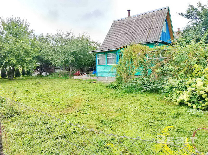 Садовый домик с мансардой 1990 года постройки в ближайшем пригороде г. Бреста. Стены из строительного бруса, наружная отделка – деревянная вагонка; двускатная крыша, кровля – шифер. Общая площадь 40 кв.м. В доме два помещения для летнего отдыха, имеется кухонная зона, печь. Коммуникации: электричество – централизованное, газ - централизованный по улице, водоснабжение – скважина. Товарищество активно застраивается для постоянного проживания. Земельный участок правильной формы площадью 0,0424 га огорожен забором,