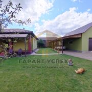 К дому и гаражу ведут бетонные дорожки, на изумрудном газоне произрастают многолетние молодые плодовые деревья и кустарники, а рядом с домом и навесом гаража на специальной ограде вьётся виноградная лоза.