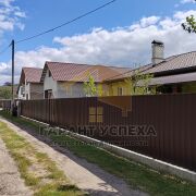 Земельный участок правильной формы размером 6,23 сотки со всех сторон огорожен забором из металлочерепицы с калиткой и автоматическими откатными воротами. Форма собственности – частная. Участок угловой с минимальным количеством соседей.