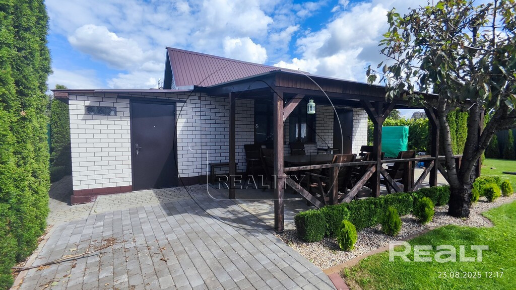 Имеются также мангал с навесом, хозблок для садового инвентаря, дровник. Место для отдыха, релакса и посиделок у костра.Перед домом на границе участка есть место для стоянки авто.