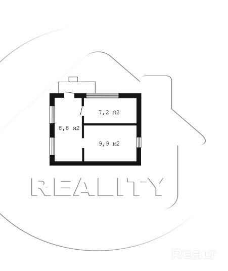 Общая площадь дачного дома без учета террасы и мансардного этажа 25.9 кв.м, кухня 8.8 кв.м.