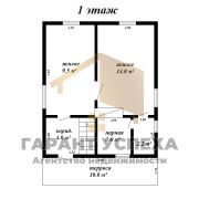 В доме имеются две комнаты на первом этаже, банное помещение, коридор с лестницей и терраса при входе. На мансардном этаже предусмотрена ещё одна комната с лоджией. Помещения дома отапливаются при помощи печи, в том числе и на мансардном этаже. При желании имеется возможность размещения санузла в доме на месте банного помещения.