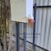Земельный участок площадью 5,35 соток находится в частной собственности. Территория огорожена со всех сторон забором: из металлопрофиля по лицевой стороне, из сетки-рабицы вдоль водоёма, а большие семиметровые откатные ворота позволяют с комфортом заезжать на участок на автомобиле. Плюсом для многих покупателей будет наличие соседей только по одной стороне.