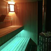 На первом этаже располагаются холл с камином, кухня, санузел, душевая и парилка, отделанная липой, ольхой и сибирской лиственницей. Полы на первом этаже оборудованы системой тёплого пола. Деревянная лестница ведёт на второй этаж, где находится просторная спальня с выходом на балкон. В доме выполнен качественный современный ремонт: обустроенная кухня, санузел облицован современной плиткой, есть мебель, телевизор и система видеонаблюдения. Просторная терраса создана для комфортного отдыха.
