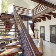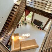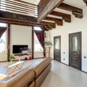 В доме: четыре жилых комнаты (из двух выходы на балконы в разных частях дома), большая кухня-гостиная со «вторым светом», два санузла, большая терраса на втором этаже над парадным входом, несколько вспомогательных помещений.