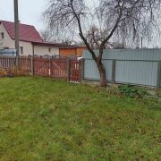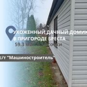 Продаётся дачный участок с домиком в СТ "Машиностроитель" (Чернавчицкий с/с). Площадь участка составляет 5.38 соток Площадь дома - 59.3 м2 , 2015 г.п. Дачный участок находится всего в 1.5 км от Бреста в направлении города Каменец, в 500 метрах расположена остановка районного сообщения. В окрестностях есть лес и река Лесная, что делает это место идеальным для отдыха на природе. Участок огорожен забором со всех сторон, на нём есть уличный туалет, дровница и залит фундамент для постройки бани с выведенными трубами для воды и канализации. Дом построен из блоков, крыша двухскатная, покрыта металлочерепицей, стены утеплены и обшиты сайдингом. Внутри находятся три жилые комнаты, оборудованная кухня и ванная комната, совмещённая с санузлом. Коммуникации включают газ на участке, печное отопление, скважину и гидрофор для водоснабжения.