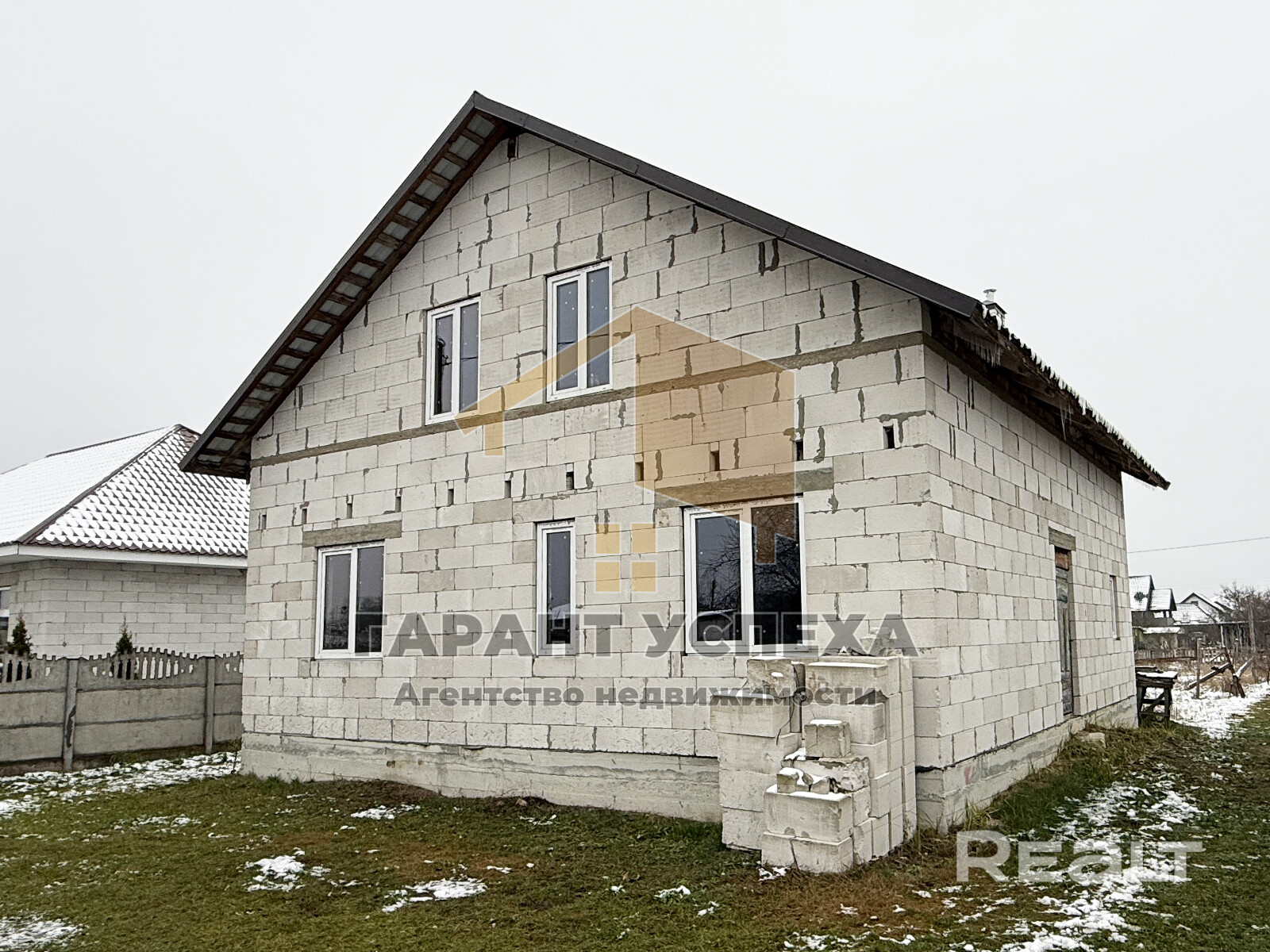 Здание имеет ленточный бетонный монолитный фундамент, материал стен – газосиликатные блоки 30 см, двускатная крыша - металлочерепица, окна – ПВХ.