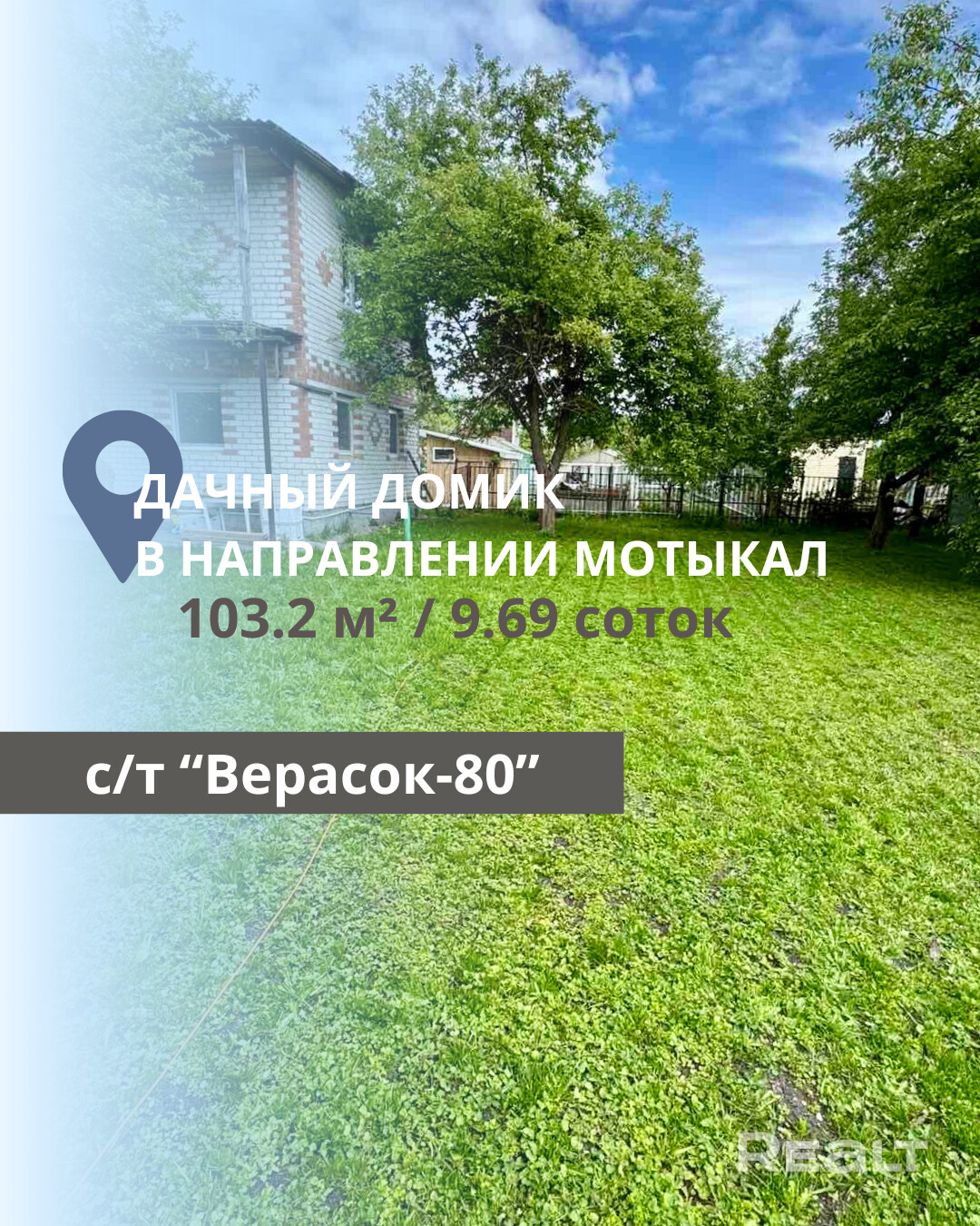 Продаётся просторная дача в живописном районе д. Малые Косичи, Брестский район, Тельминский сельсовет, СТ Верасок - 80. Построенная в 2008 году, дача имеет один этаж и мансарду с общей площадью 103,2 кв.м, включая три уютные комнаты. Стены выполнены из блока, с отделкой фасада из силикатного кирпича, а крыша покрыта шифером. Фундамент представляет собой ленточный монолитный бетонный, с бетонной подушкой.