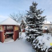 На участке расположены: капитальный сарай, уборная, теплица, беседка.