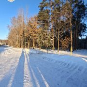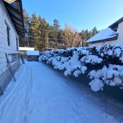 Дом расположен в лесном массиве, в 50-и метрах от дороги.