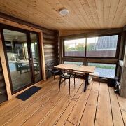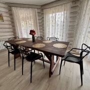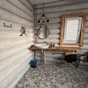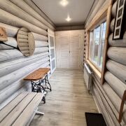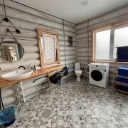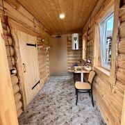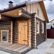 Дом построен из бруса и имеет застеклённую террасу, идеально подходящую для отдыха. В санузле выложена красивая плитка современного образца, что добавляет комфорта. Также на территории имеется отдельное здание под баню.