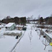 Земельный участок 5,78 соток. Участок огорожен забором по всему периметру. На участке: частично выложена тротуарная плитка, высажены плодовые деревья, теплица и хоз. постройка. До асфальта 300 метров.