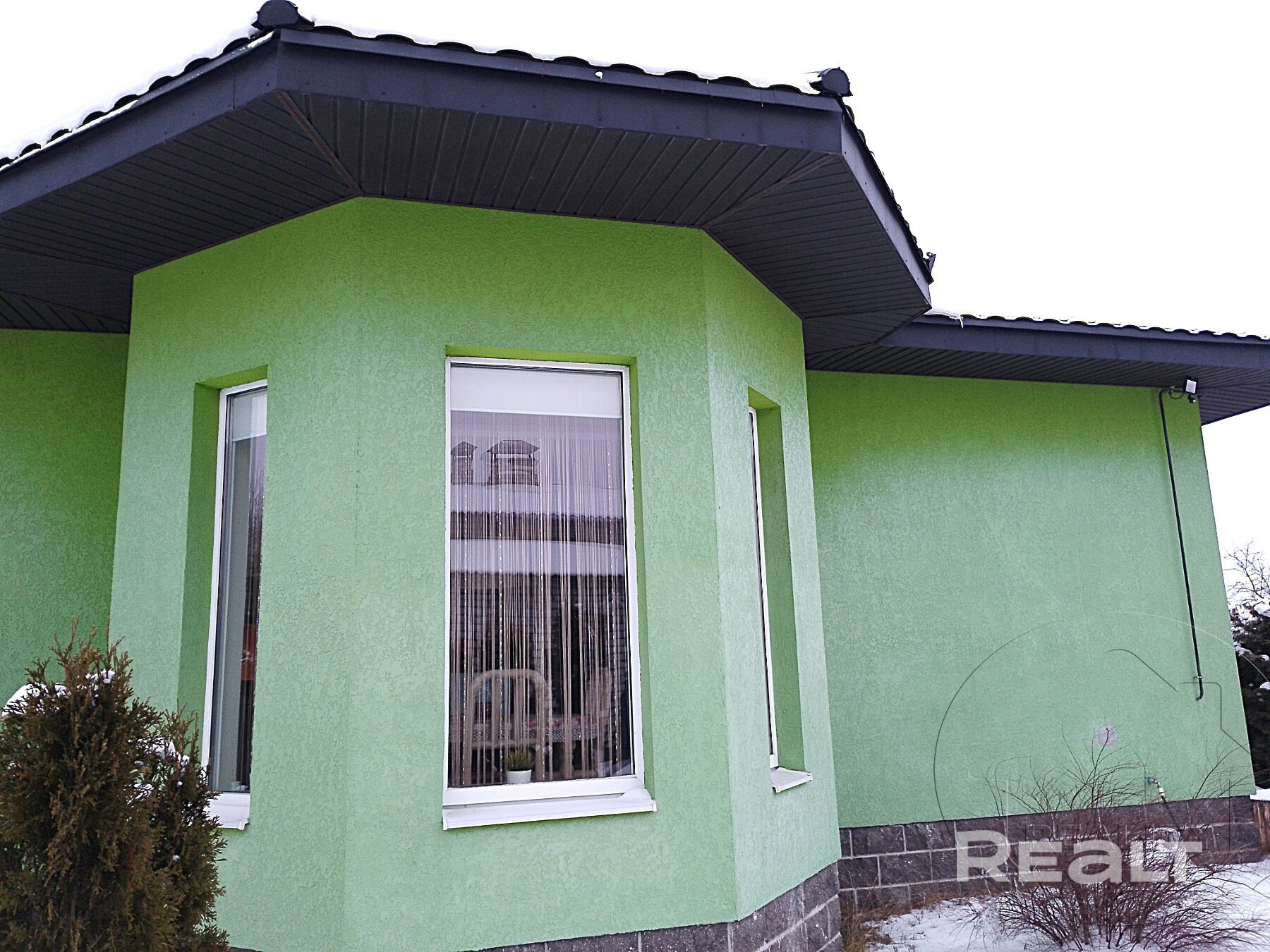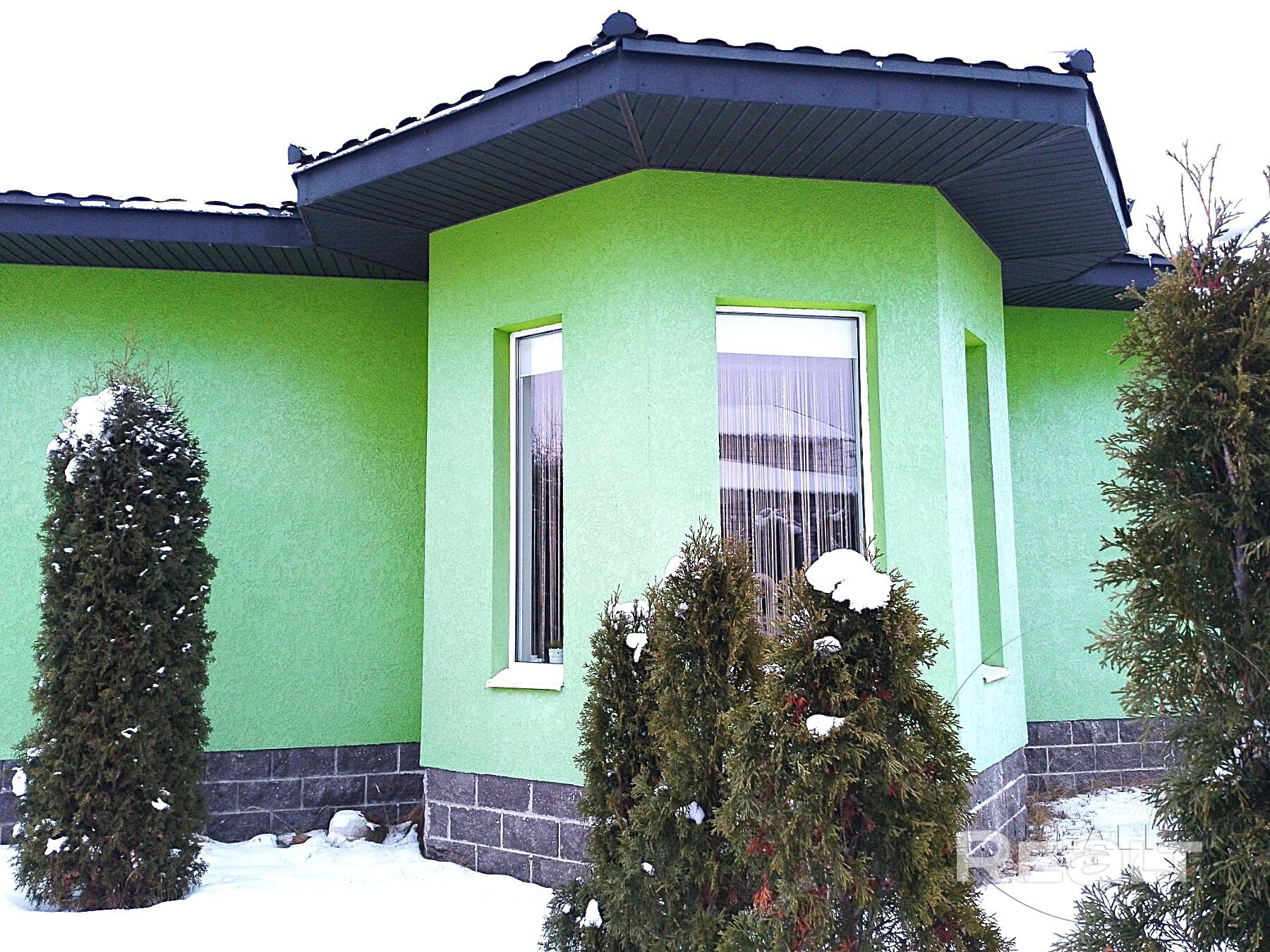 Дачный дом-бунгало 2014 года постройки. Фундамент- ленточный монолитный/ бетон. Стены - блочные с утеплением в системе Термошуба. Оштукатурены и окрашены стойкой к УФО фасадной краской. Многоскатная кровля накрыта металлочерепицей. Деревянное мансардное окно. Окна и выход на террасу - ПВХ. Входная дверь-металлическая.