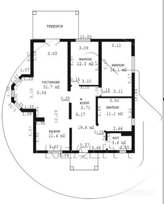 Общая площадью строения 169м2/ площадь жилого помещения дома 148м2/ жилая площадь 71 м2/ кухня-гостиная 31.7 м2.