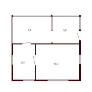 Дом площадью 33 м2, деревянный, выполнен из бруса и расположен на надёжном ленточном фундаменте. Утеплён, подходит для круглогодичного проживания. Двухскатная крыша, две светлые комнаты, деревянные окна, стены обшиты вагонкой, на полу — прочная доска, создающая атмосферу уюта и тепла.