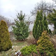Есть зона барбекю, сарай, участок закрыт со всех сторон забором.