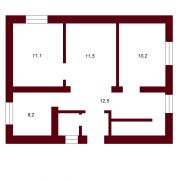 Общая площадь дома - 55,7 м2, где по планировке предусмотрены 2 комнаты, кухня 11,1 м2, ванная комната, топочная и кладовая, также есть возможность оборудовать мансардный этаж. Построен в 2016 году из газосиликатных блоков, материал кровли - гибкая черепица.