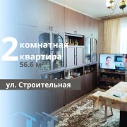 2-комнатная квартира по ул. Строительная. Общая площадь 56,6 кв.м., жилая 29,9 кв.м., кухня 8,9 кв.м. Квартира расположена на первом эаже пятиэтажного панельного дома 1991 года пострйоки.