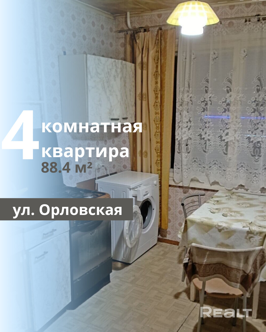 4-комнатная квартира на Востоке, ул. Орловская. Расположена на 4 этаже 9-этажного панельного дома 1982 года постройки. Общая площадь 81,3 (по СНБ 88,4), жилая - 53, кухня - 9,3 м2.