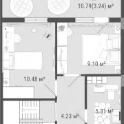 Трехкомнатная квартира расположенная на 3 и мансардном этажах 3-этажного дома жилого комплекса «Малиновка» в районе Красного двора. Каркасная технология строительства. Толщина межэтажных перекрытий 200 мм обеспечивает хорошую звукоизоляцию. Наружные стены из газосиликатных блоков (250 мм), фасад здания утеплен по периметру минераловатными плитами (100 мм), межкомнатные перегородки - кирпичные. Стеклопакеты; входная дверь – металлическая. Общая площадь 71,53 кв.м.