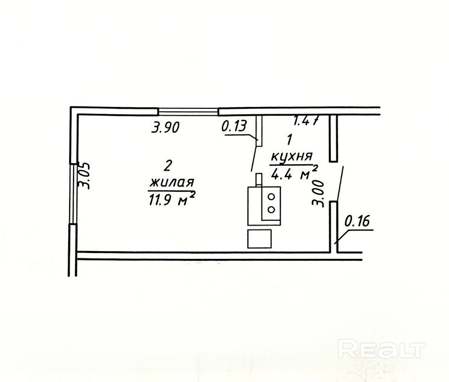 Продается 1-комн. квартира в жилом доме по ул. Брестская, д. 44. Общая площадь – 16.3 м²., жилая- 11.9 м²., кухня – 4.4 м².
