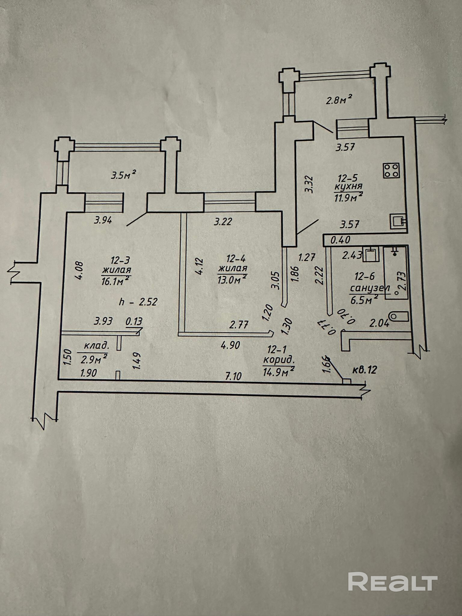 Отличная планировка, два балкона. Просторные комнаты, кухня и санузел.