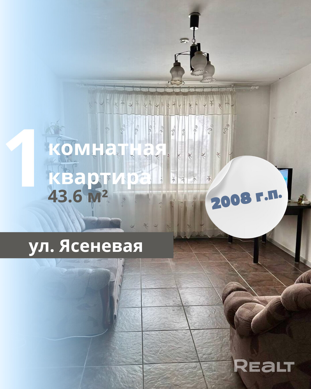 Продается светлая однокомнатная квартира в Бресте по адресу ул. Ясеневая, мкр. Ковалево. Общая площадь квартиры составляет 43.6 м2, из которых жилая площадь составляет 17.1 м2, а кухня – 8.8 м2. Квартира расположена на 4 этаже десятиэтажного панельного дома, построенного в 2008 году. В квартире раздельный санузел, а также есть лоджия, что добавляет дополнительный комфорт. Квартира находится в аккуратном жилом состоянии и идеально подходит для проживания. В непосредственной близости расположена вся необходимая инфраструктура, что делает её удобной для жизни.