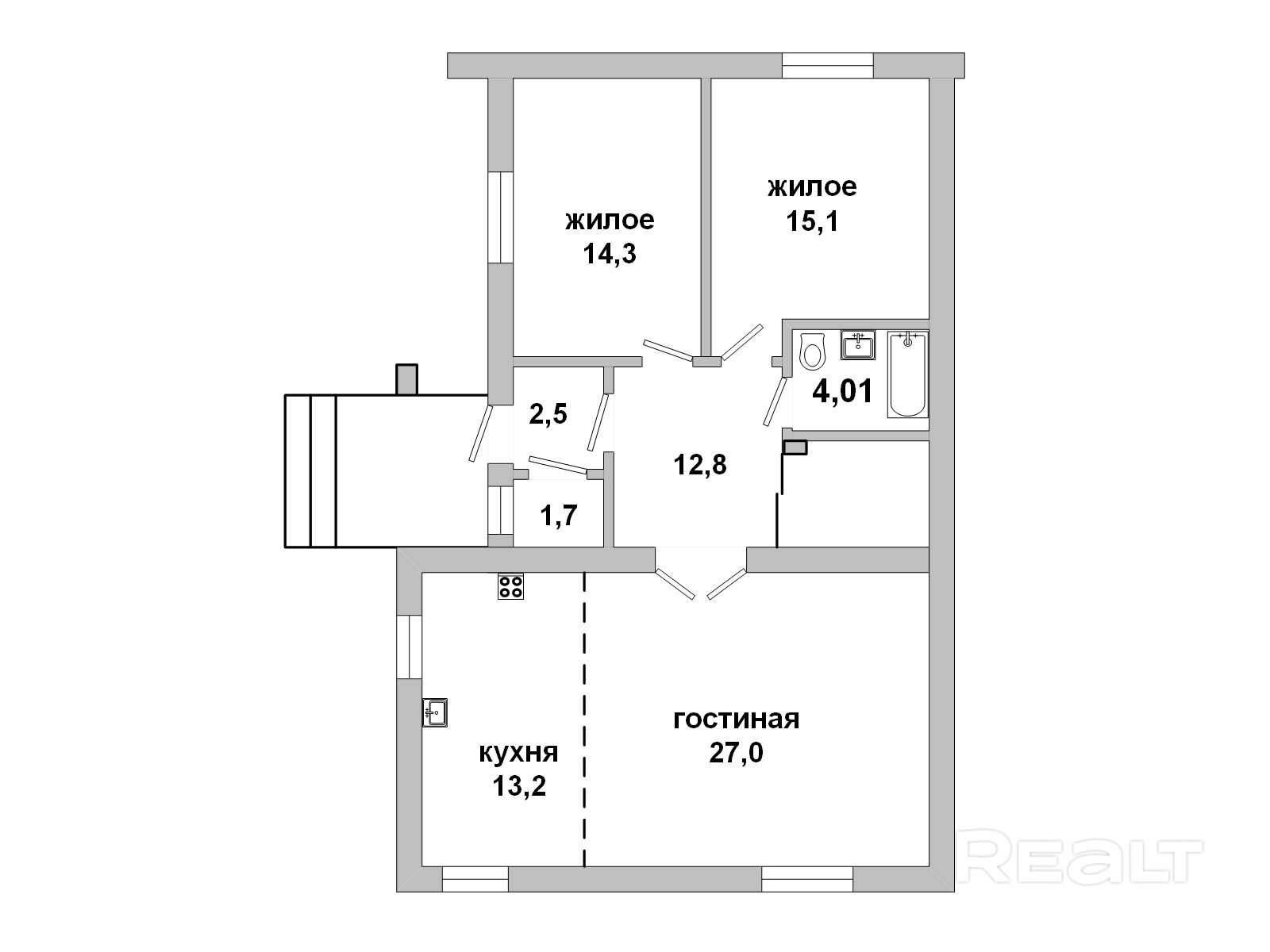 - Раздельных комнат