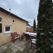 Имеется свой приусадебный участок — зона отдыха, огороженная площадка площадью 20 кв. метров примыкающая к дому (при необходимости можно пристроить дополнительную комнату с мансардой). В настоящее время используется под барбекю: стоит стол и два кресла, шатер, мангал, насаждения — туи и цветы. Выведен кран для полива. Территория вымощена тротуарной плиткой.